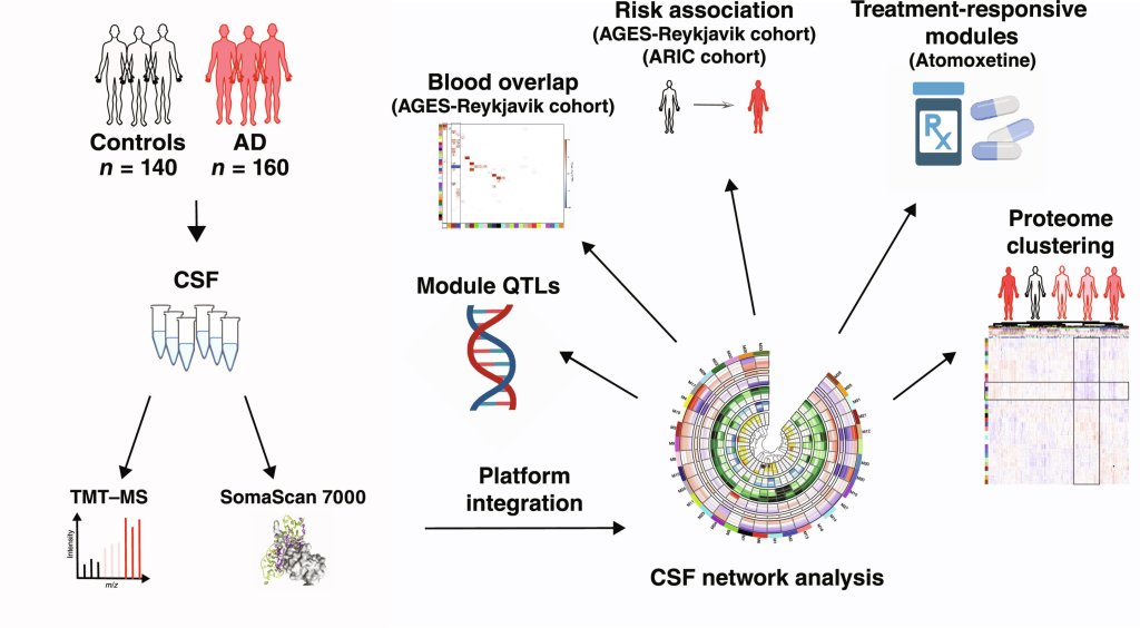A large team of neuroscientists, biochemists and Alzheimer’s specialists affiliated with institutions in the U.S. and Iceland has created a protein map to look for patterns in cerebrospinal fluid that may serve as markers for the onset of Alzheimer’s disease decades before diagnosis.