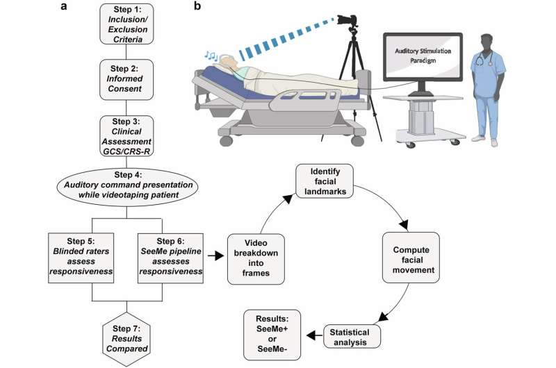SeeMe, a computer vision tool, was able to detect low-amplitude, voluntary facial movements in comatose patients with acute brain injury days before clinicians could identify overt responses.