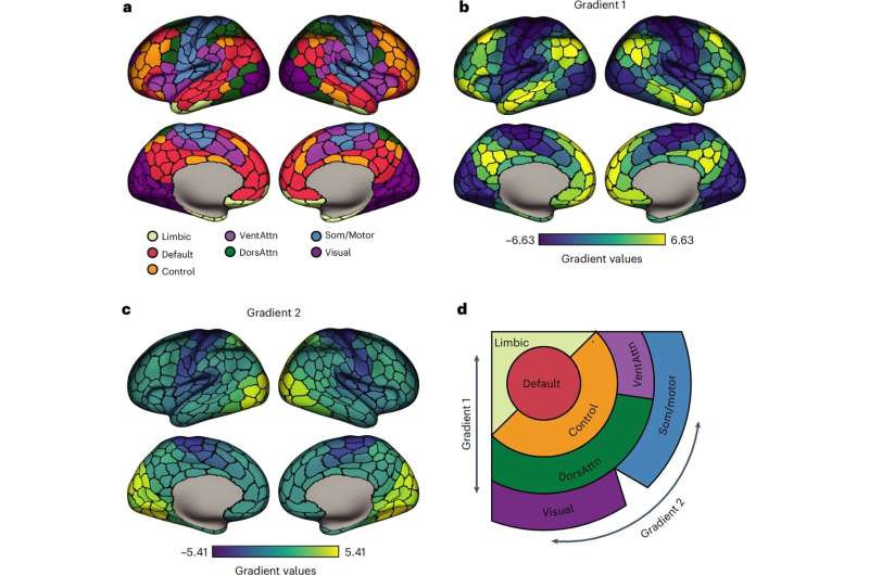 Large-scale functional networks are embedded along two principal gradients. Credit: Nature Neuroscience (2024).