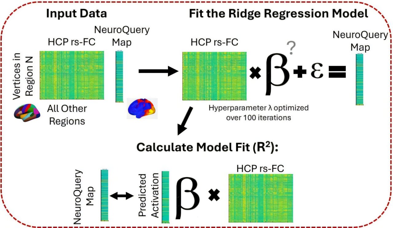 Diagram outlining the model procedures for one domain and one region. This process was repeated for all 33 domains and 82 regions. Credit: Network Neuroscience (2025).