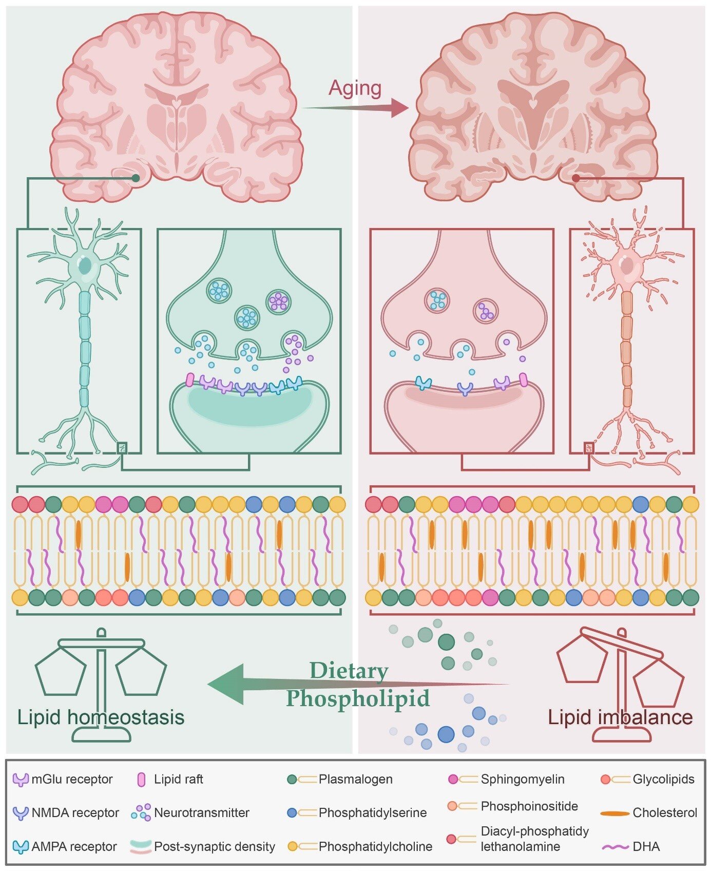Dietary phospholipid intervention could prevent brain aging by maintaining lipid homeostasis and enhancing synaptic plasticity. Credit: Wei Xiong et al.